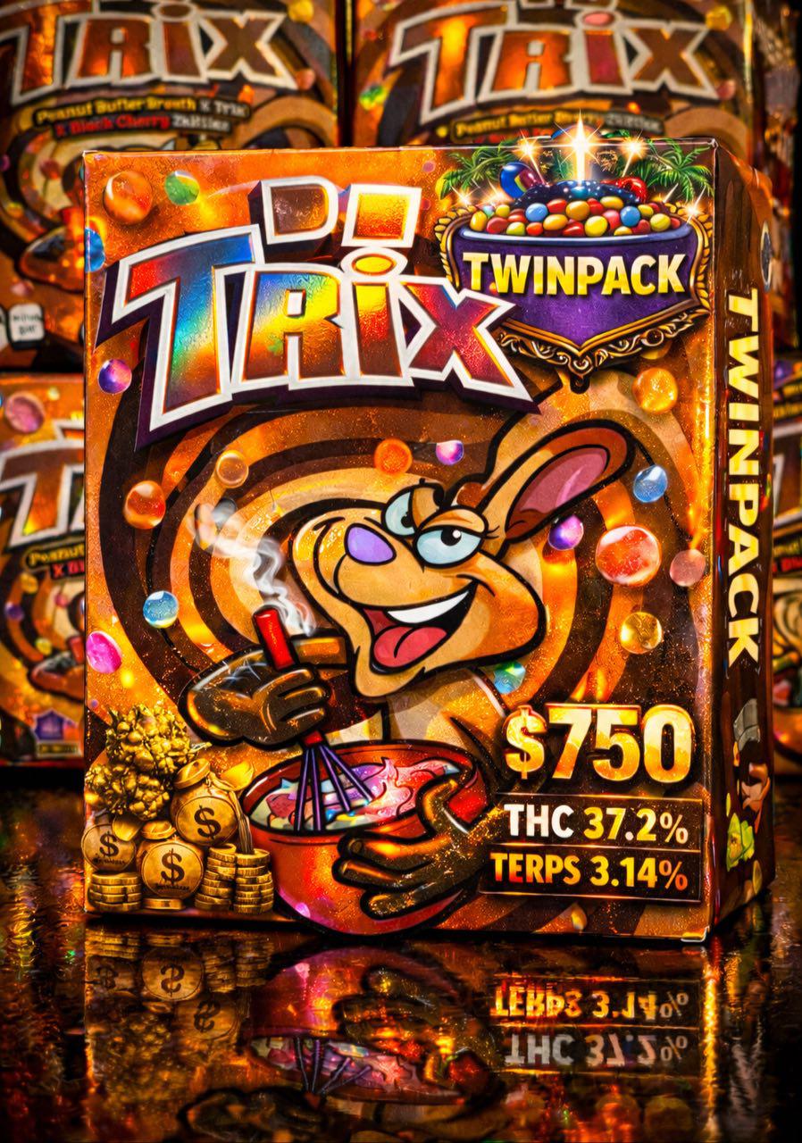 For concentrate or vape products made from Trix, the cured flower may undergo clean extraction methods such as CO₂ or hydrocarbon extraction to retain cannabinoids and terpenes. Final products are lab‑tested for potency, purity, and safety before packaging, ensuring a consistent, high‑quality cannabis experience.